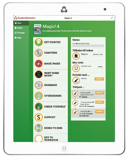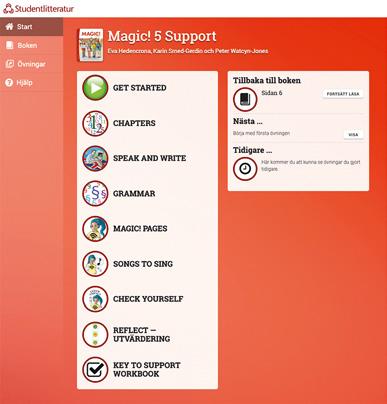 I det digitala läromedlet finns en digital version av Support Textbook, som är inläst utan bakgrundsljud, samt ett urval av digitala övningar från Magic! Elevpaket.