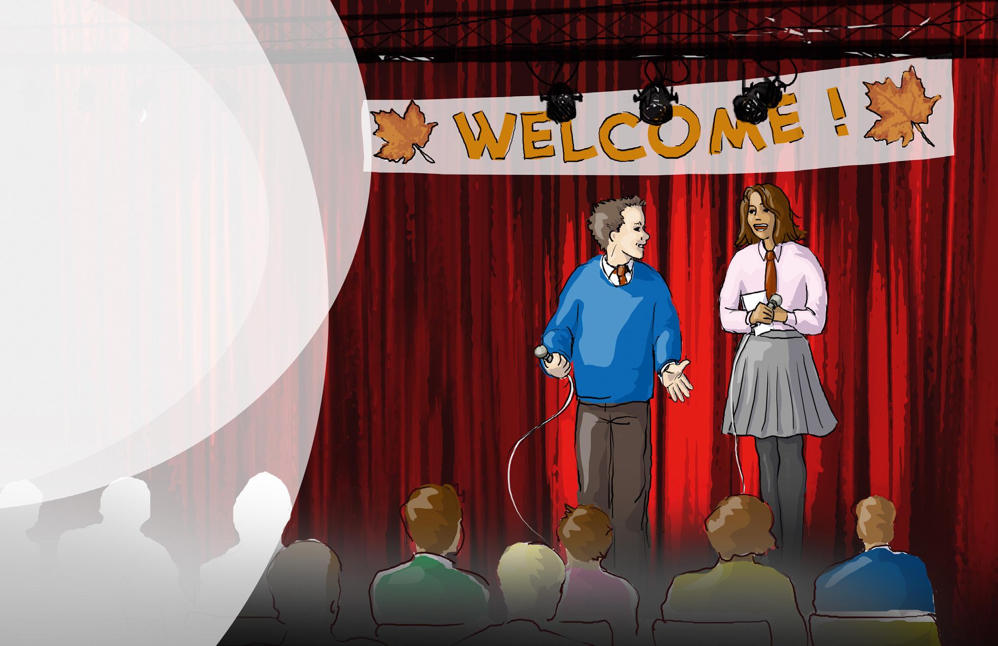 12 FUN IN SCHOOL 28 en föreställning i Harrys skola dialog teaterord, att uppträda verb