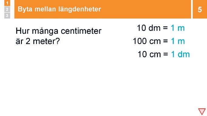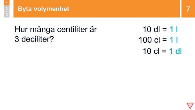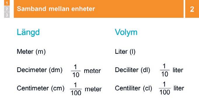 översätta hela meter eller liter till centimeter och deciliter. När de är förtrogna med detta kan de göra andra, mer utmanande enhetsbyten.
