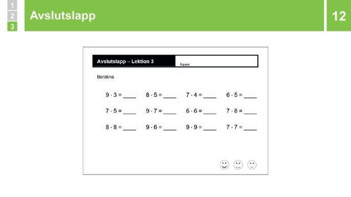 Avslutslappen visar om eleverna kan använda sig av huvudräkning för att göra några multiplikationer där den ena faktorn är 0–5 eller 10. Om elever gör många fel och/eller tar väldigt lång tid på sig betyder det att de behöver mer färdighetsträning. Se till att de har hållbara strategier innan de exempelvis får färdighetsträna med winnetkakort.
