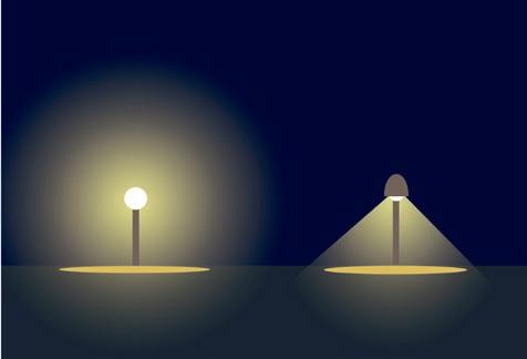 Från en ljuskälla sprider sig ljuset åt alla håll.