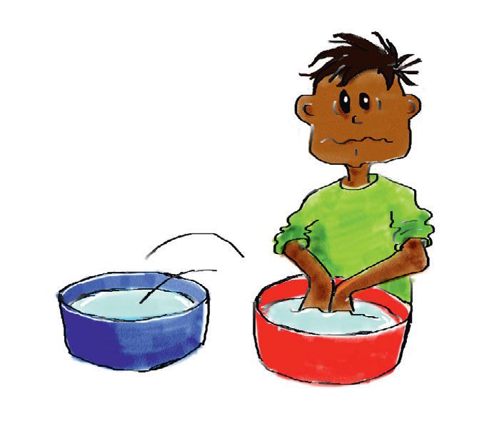 Fyll en skål med varmt vatten och en med kallt vatten.