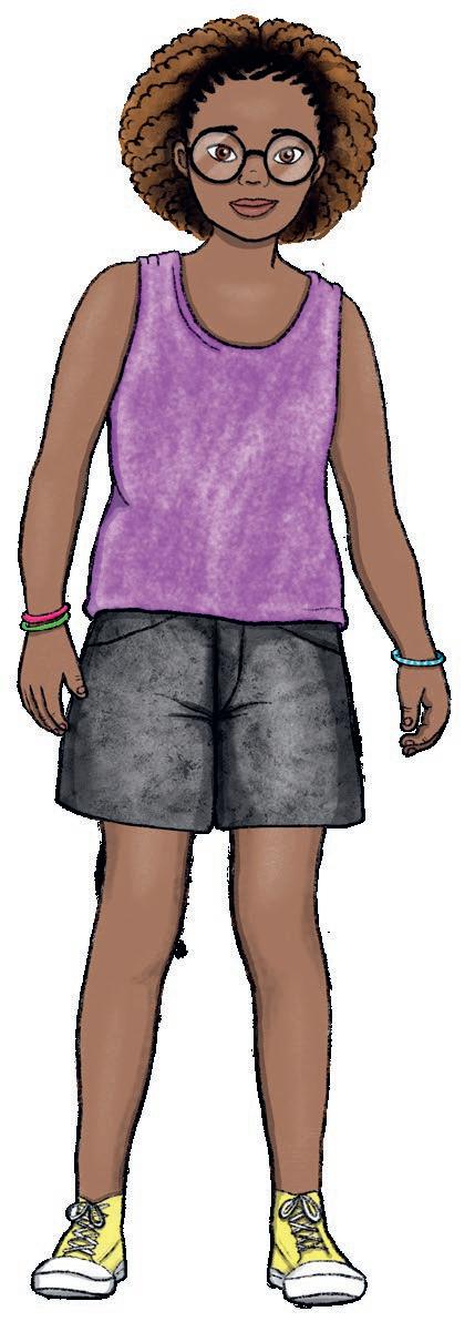 But who was the girl? Zelda looked closely. The girl was about her age. She wore denim shorts and a purple tshirt. She didn’t have shoes on, and her black hair was big and curly, just like Zelda’s.