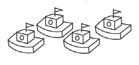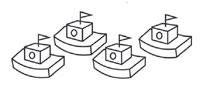 4 Prickarna på fyra tärningar är sammanlagt 10. Hitta på fyra olika lösningar. Rita prickarna.