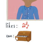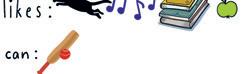 Has a sister. Name: Likes to draw. Name: Likes fruit. Name:
