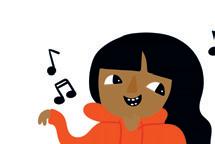 5. Has long black hair and is wearing a red hoody. Likes dancing.