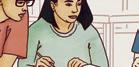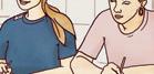 Can, Hannah, Mina und Kim haben Freistunde und treffen sich in der Cafeteria.