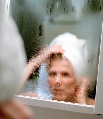 9 När man duschar i ett badrum blir fönstret ofta fuktigt, trots att det inte stänkt något vatten på det. Förklara varför.