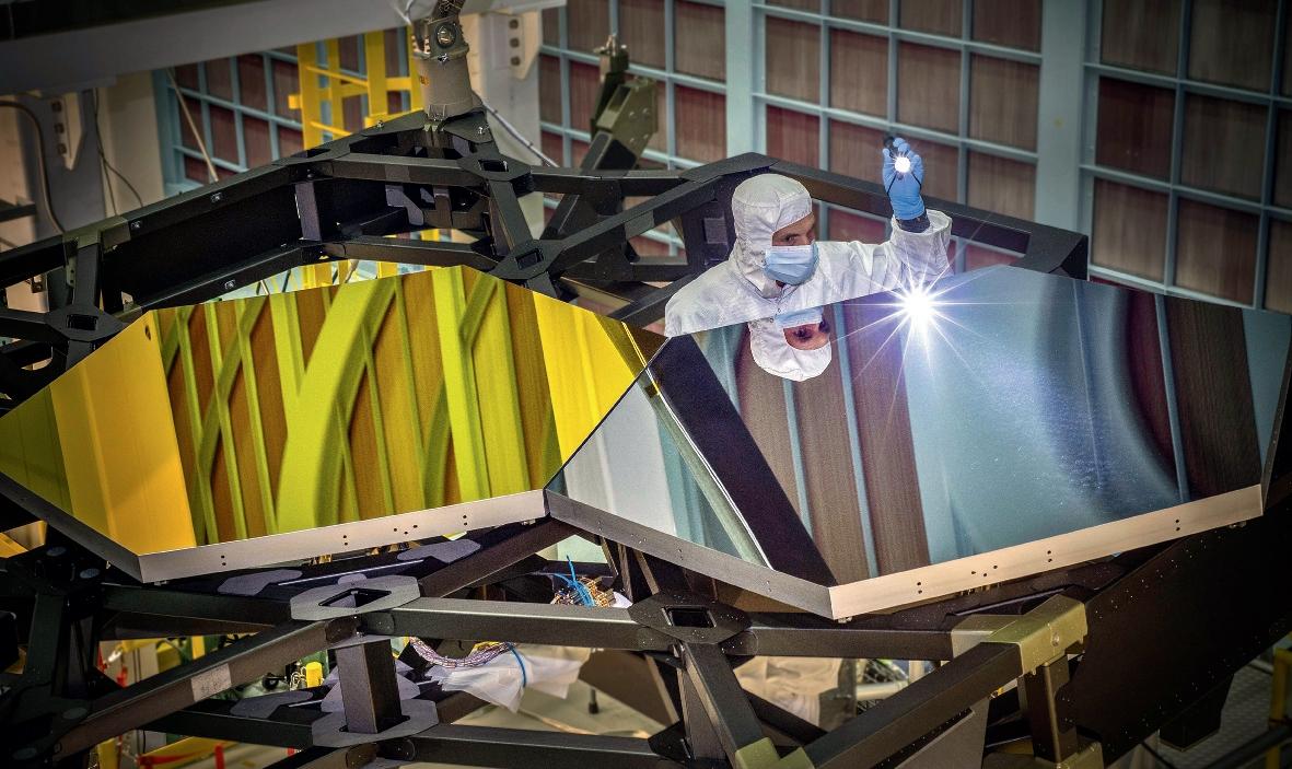 Två av sammanlagt 18 speglar som tillhör det nya rymdteleskopet James Webb. Målet är att kunna se ännu längre ut i rymden än vad man kan idag.