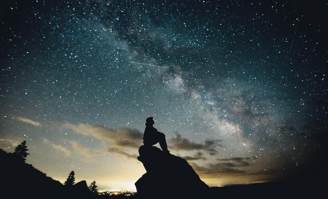 Det ljusa stråket är galaxen Vintergatan som jorden och vårt solsystem befinner sig i.