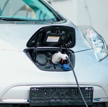 Elbilar med batterier som spänningskälla ”tankas” med elenergi via laddstolpar.
