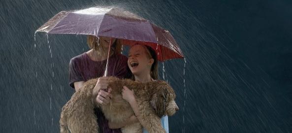 Men duggregn är ett snällt regn. Man blir blöt, men man känner inga droppar. De är så små att duggregnet mer känns som dimma.