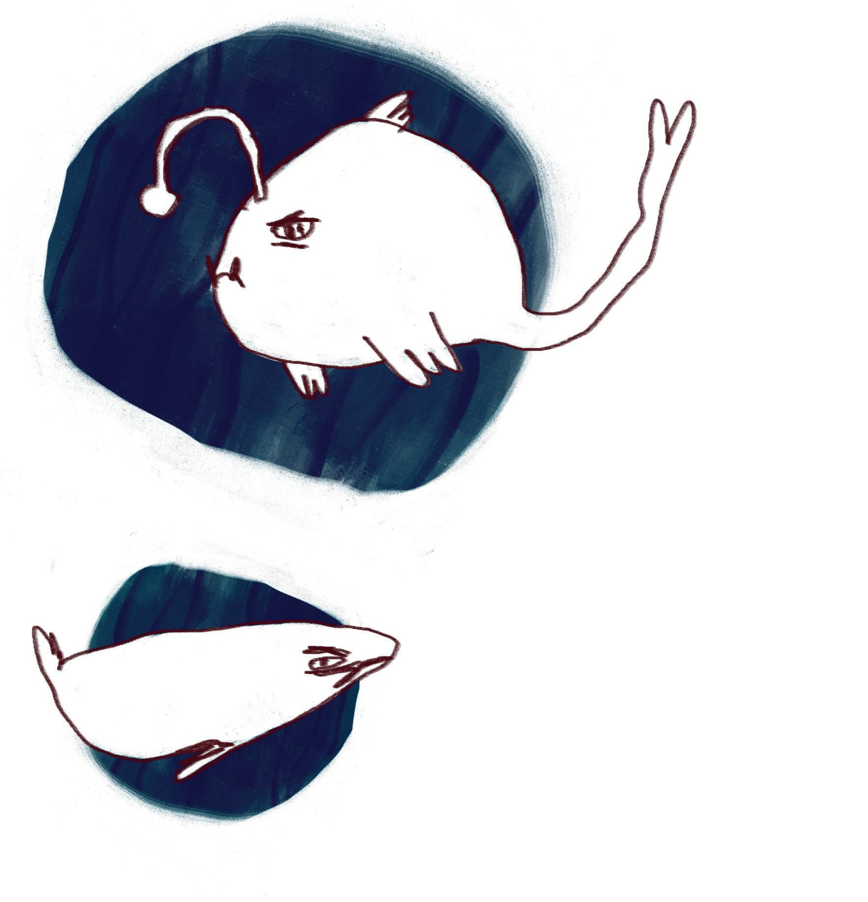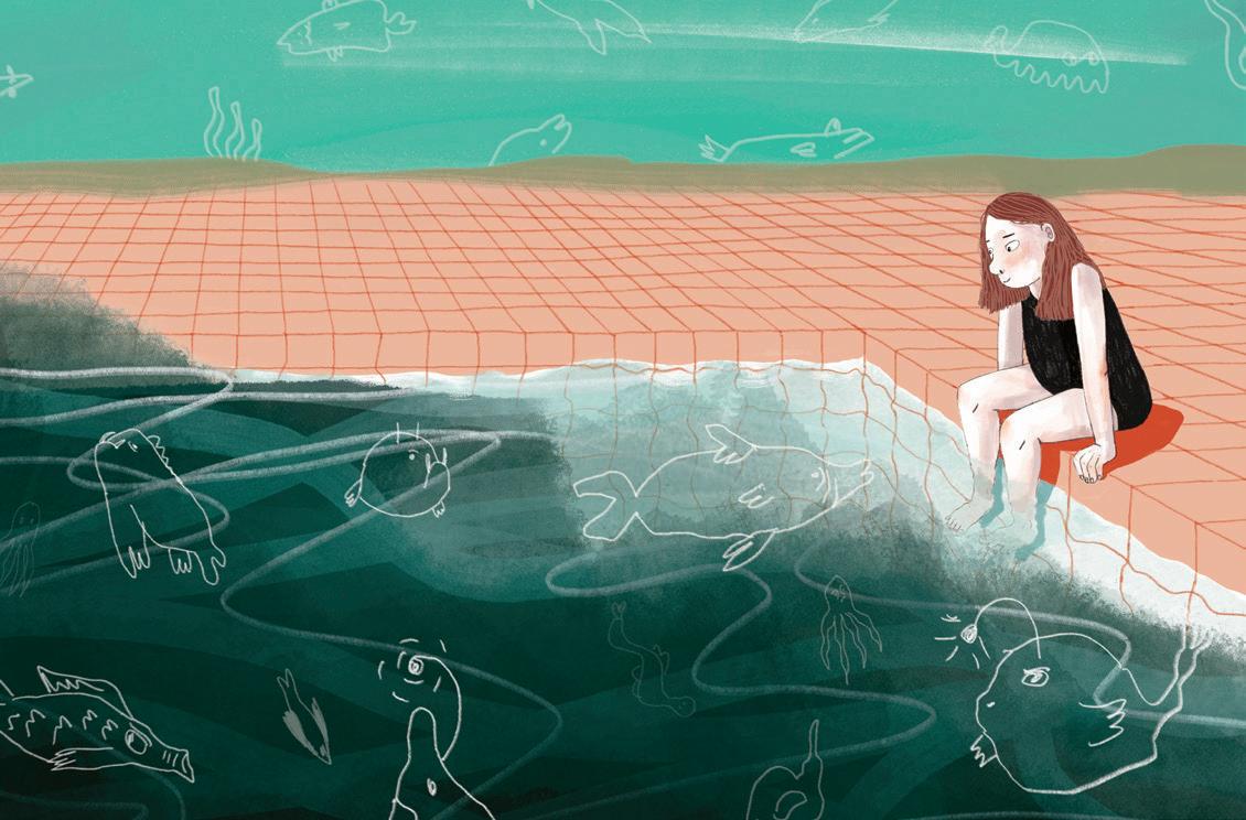 Där nere lever bara konstiga fiskar och det finns inget ljus. Ska hon nånsin våga simma där?