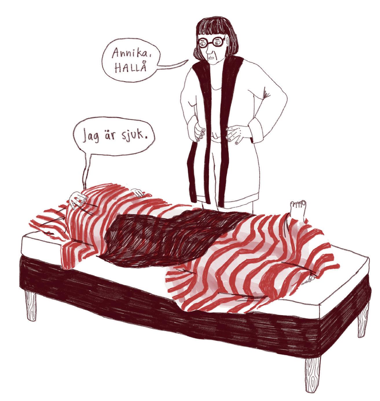 Precis såhär är det varje onsdag. Jag är sjuk och mamma säger ”mhm”.