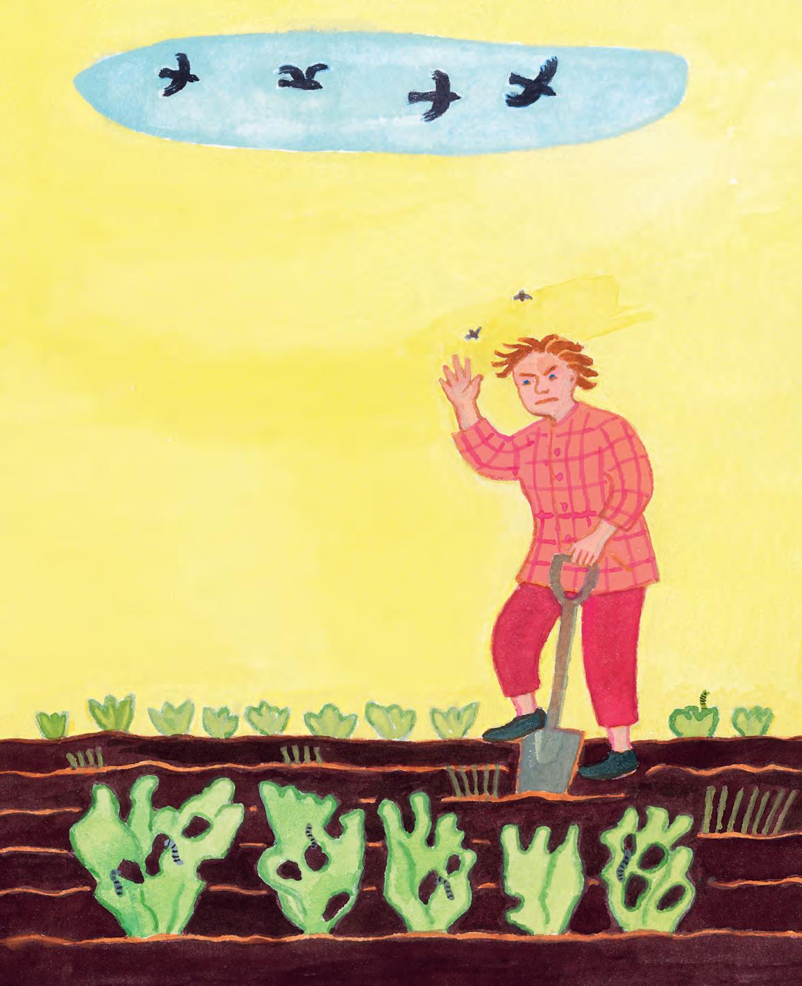Hon letar upp dem, en i taget och flyttar till rishögen bredvid.