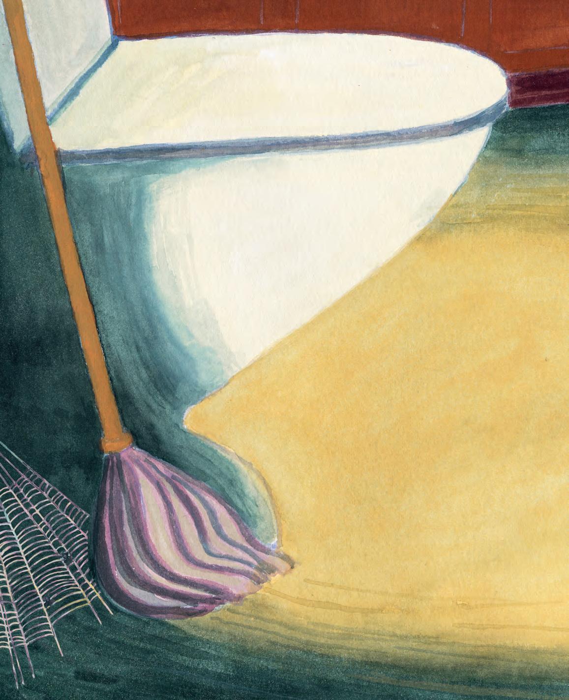 I badrummet bor Herbert. Han håller mest till i hörnen, det är där han gör sina nät.