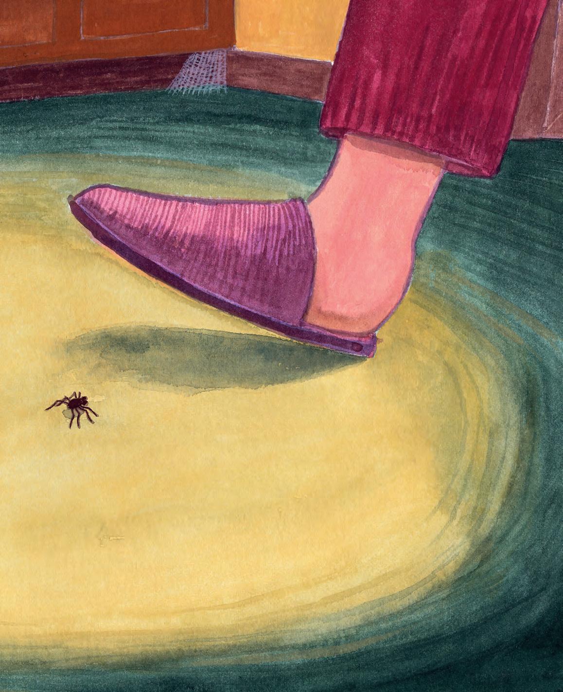 På natten vågar sig Herbert ut på golvet för att ta en genväg till andra sidan. Om någon av oss kommer in och tänder lampan står han blickstilla för att inte synas. Vi försöker låta bli att trampa på honom, det är ju ändå han som bor här.