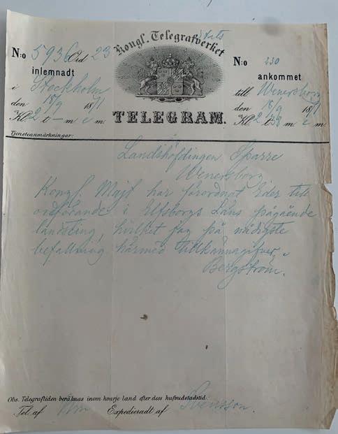 genom civildepartementets chef Axel Bergström, till landshövdingen i Älvsborgs län, Axel Sparre, för att ge honom befogenhet att leda landstingsmötet. Landstingsmötet varade vid denna tid i fyra dagar och behandlade frågor som sjukvård, vägar och skolor. År 1870 inleddes det den 20 september, följande år, 1871, den 19 september. Fullmakten skickades 1870 som brev med Posten, medan den 1871 telegraferades genom Telegrafverket. Brevet krävde porto för hela innehållet, medan telegrammet betalades per ord. Nedan är först brevet, sedan telegrammet återgivet: