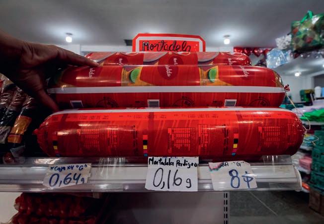 En marknad i staden Tumeremo, Venezuela: priset för den italienska korven Mortadella anges i gram guld! Vid hyperinflation, när priserna stiger kanske varje timme, vill ingen ha sedlar. Guld däremot är värdebeständigt!