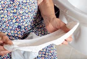 • Torka torrt, var noggrann i hudveck, under brösten, naveln, skinkorna och mellan tår så att vårdtagaren inte får svampinfektioner. Det här är ett bra tillfälle att inspektera huden.