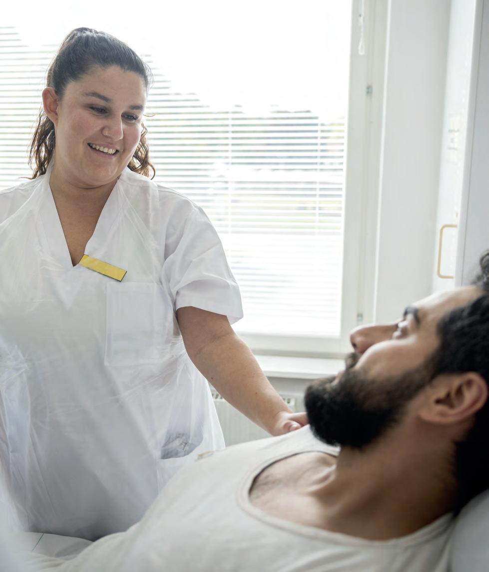 • Vårdbiträden, personliga assistenter och undersköterskor arbetar nära vårdtagare i den grundläggande omvårdnaden.