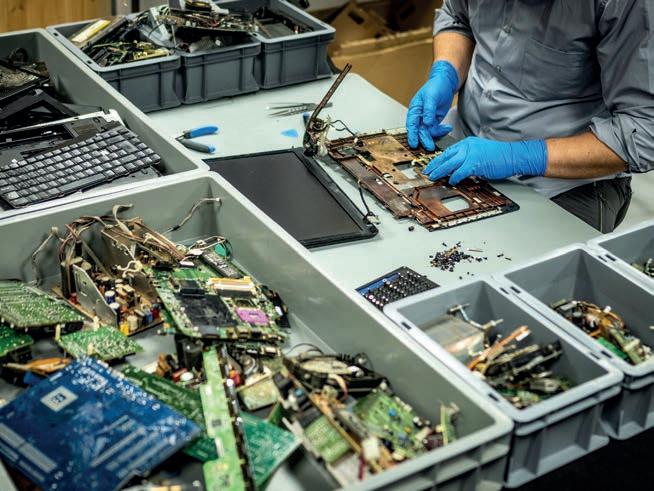 Återbruk kan vara ett sätt att arbeta mer hållbart. Här sorteras delar från kretskort och andra tekniska komponenter för att kunna användas igen i en ny produkt.