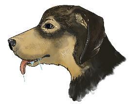 På var sida om huvudet har hunden fyra spottkörtlar. Dessa körtlar producerar saliv som töms i munhålan. Produktionen av saliv styrs av flera sinnen: hörseln, synen och luktsinnet. Både skrammel med matkoppen, åsynen och doften av aptitretande mat stimulerar spottkörtlarna att producera saliv. Resultatet är att hunden dreglar.