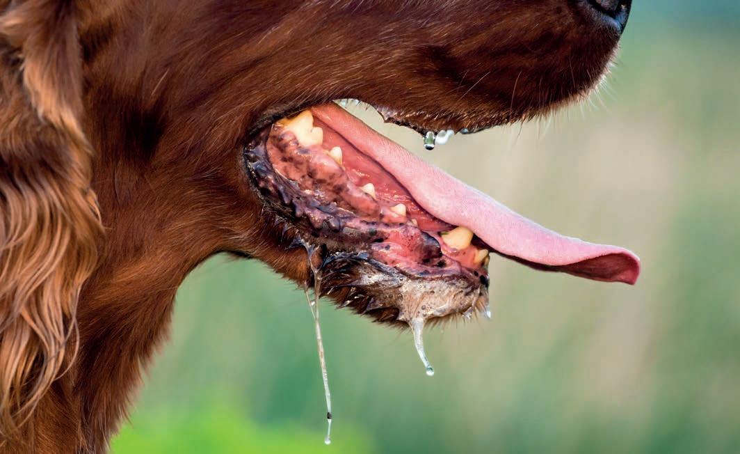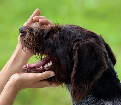 • Munnen: Öppna hundens käkar och titta i munnen.