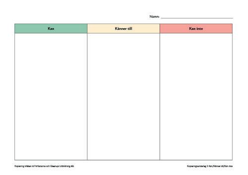 3 Kan/Känner till/Kan inte: