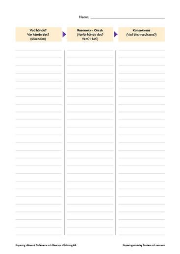 Modell som stöttning för att kunna resonera om vilka orsaker och konsekvenser en händelse får. En tom version av uppgifter som finns i arbetsboken.