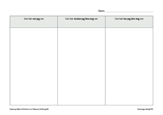 Modell för att synliggöra den kunskap eleverna redan har, vad de vill veta och vilken kunskap som de förvärvar.