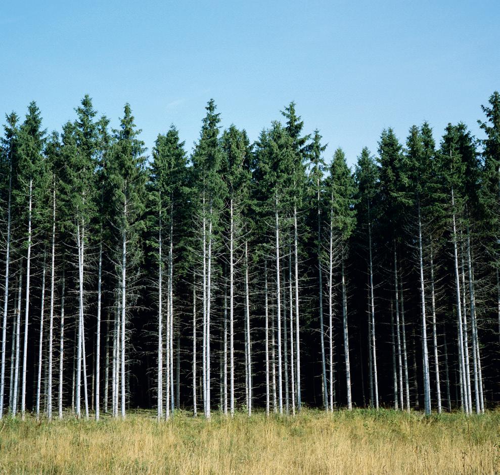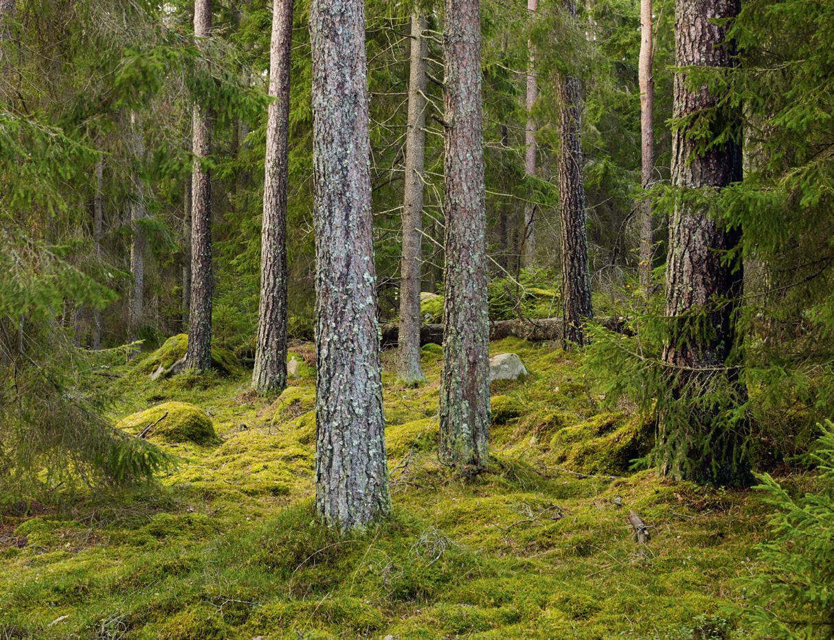 I odlad skog är de flesta träd lika gamla. Om man avverkar dem samtidigt får man stora kalhyggen.