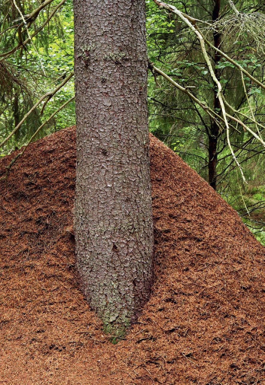 Myrorna bygger ofta stacken i söderläge för att solen ska värma upp den. Inne i stacken finns det massor med gångar och små rum.