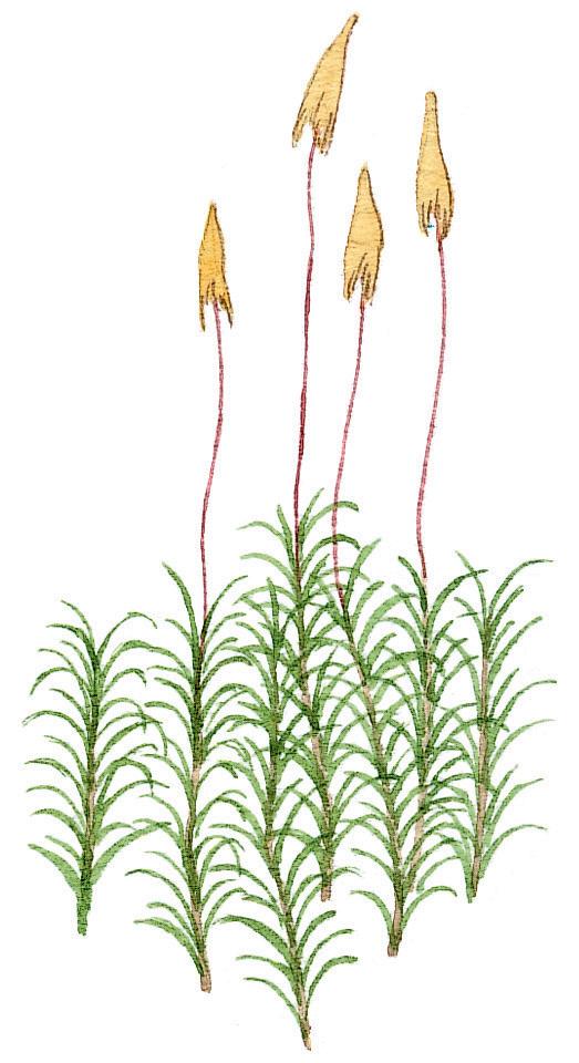 VITMOSSAN växer på fuktiga ställen i skogen och kan ta upp mycket vatten. Liksom alla mossor har den små grönaktiga blad.