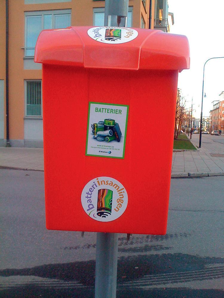 Använda batterier kan ofta lämnas in i affärer som säljer batterier. De kan också lämnas på miljöstationen, precis som elavfall, trasiga elektriska apparater med sladd eller batterier. Som elavfall räknas också ljuskällor, som lampor och lysrör.