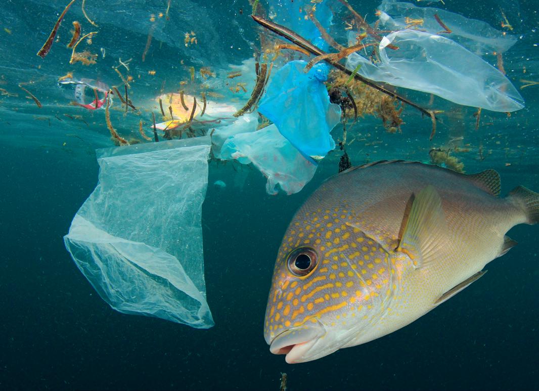 Ett annat allvarligt miljöproblem är mikroplast, som är mycket små plastdelar. Den används i många produkter, men bildas också när plast slits och bryts ner. Mikroplasterna är för små för att fångas upp i reningsverk, istället åker de rakt ut i haven. Där hamnar de i fiskar och andra djur och förs vidare i näringskedjan. Idag vet vi att mikroplaster skadar djuren, men inte hur mycket. Vi människor, som är sist i näringskedjan, får också i oss mikroplaster när vi äter fisk och skaldjur.