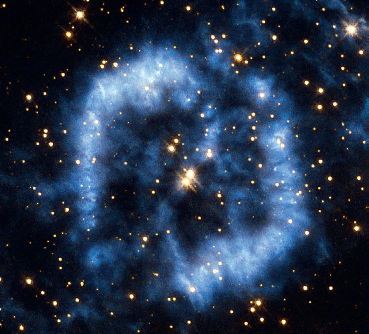 Stjärnan blir en röd jätte. När bränslet nästan är helt slut, drar den ihop sig och bildar istället en vit dvärg. Så kommer slutet att bli för vår sol.