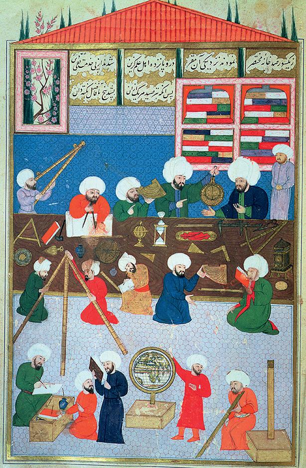 Rymden har inspirerat vetenskapsmän i alla tider. Bilden visar ett observatorium på 1500-talet med olika redskap och instrument som användes då.