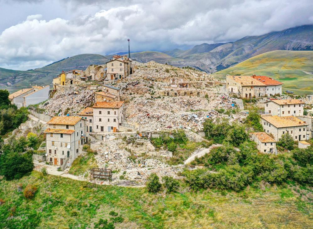 Över hälften av husen i byn Castelluccio i Apenninerna förstördes i en jordbävning år 2016.