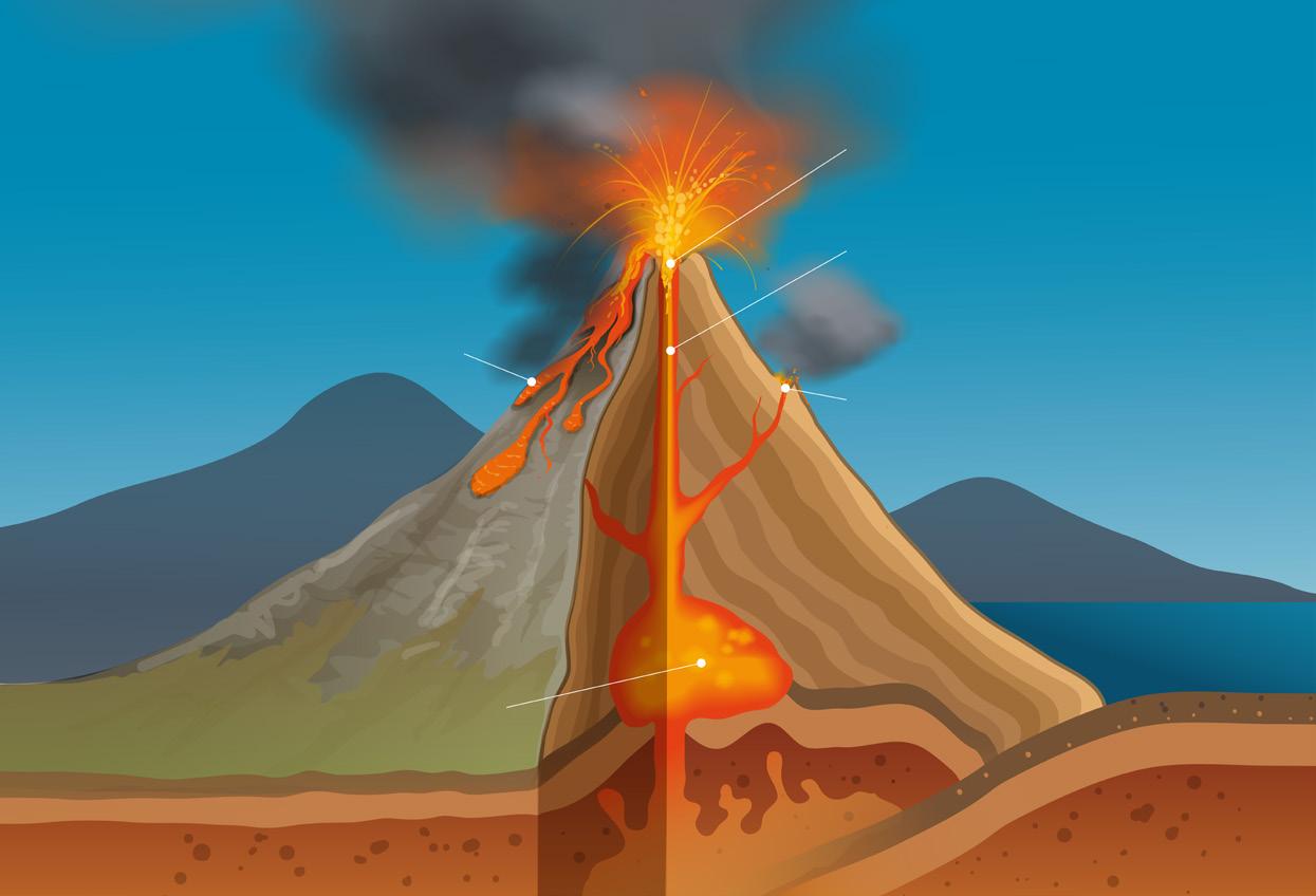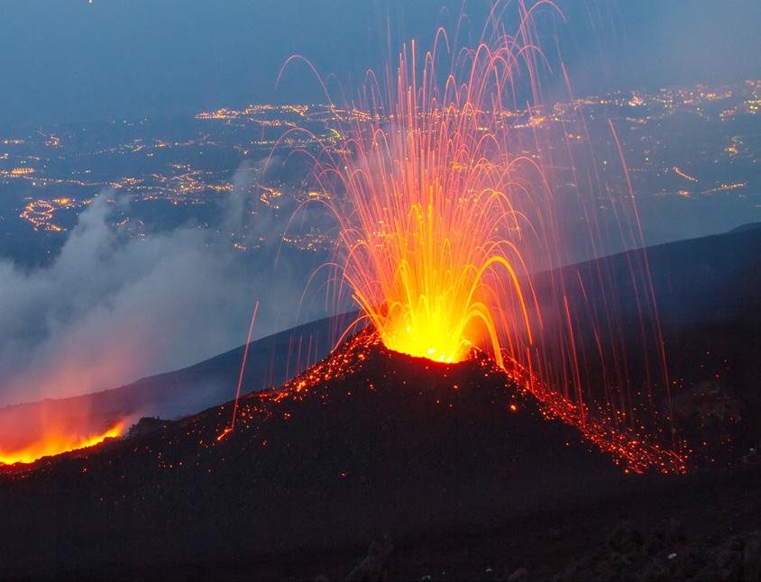 • Två av Italiens 13 vulkaner, Stromboli och Etna, är särskilt aktiva. Vesuvius vid staden Neapel hade sitt senaste utbrott 1944. I samma område finns Flegreiska fälten, som inte syns utan är en vulkan som är aktiv under marken. Den är en så kallad supervulkan, som vulkanforskare bevakar.