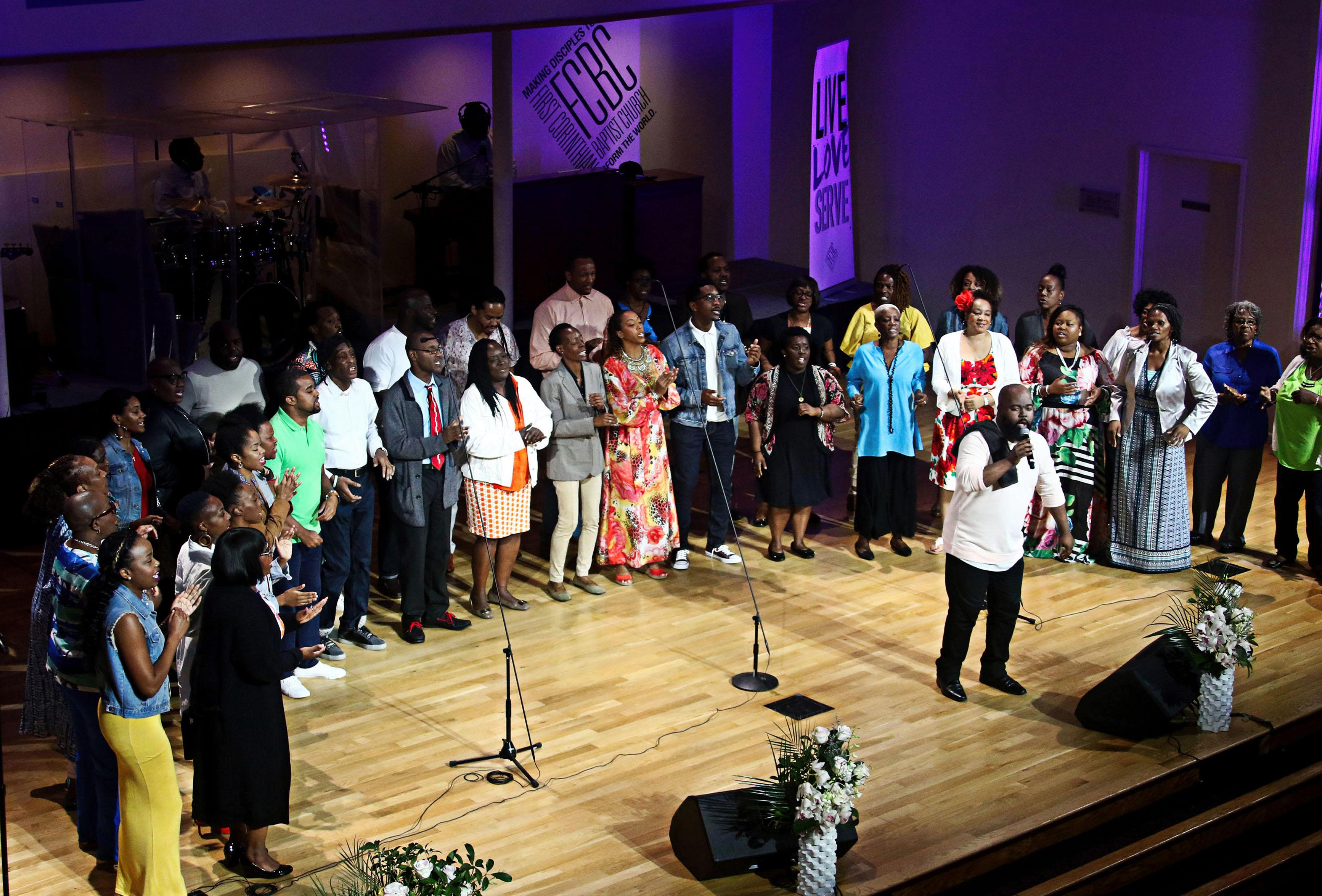 En kör sjunger gospelsÄnger under en gudstjÀnst i First Corinthian Baptist Church i Harlem New York.
