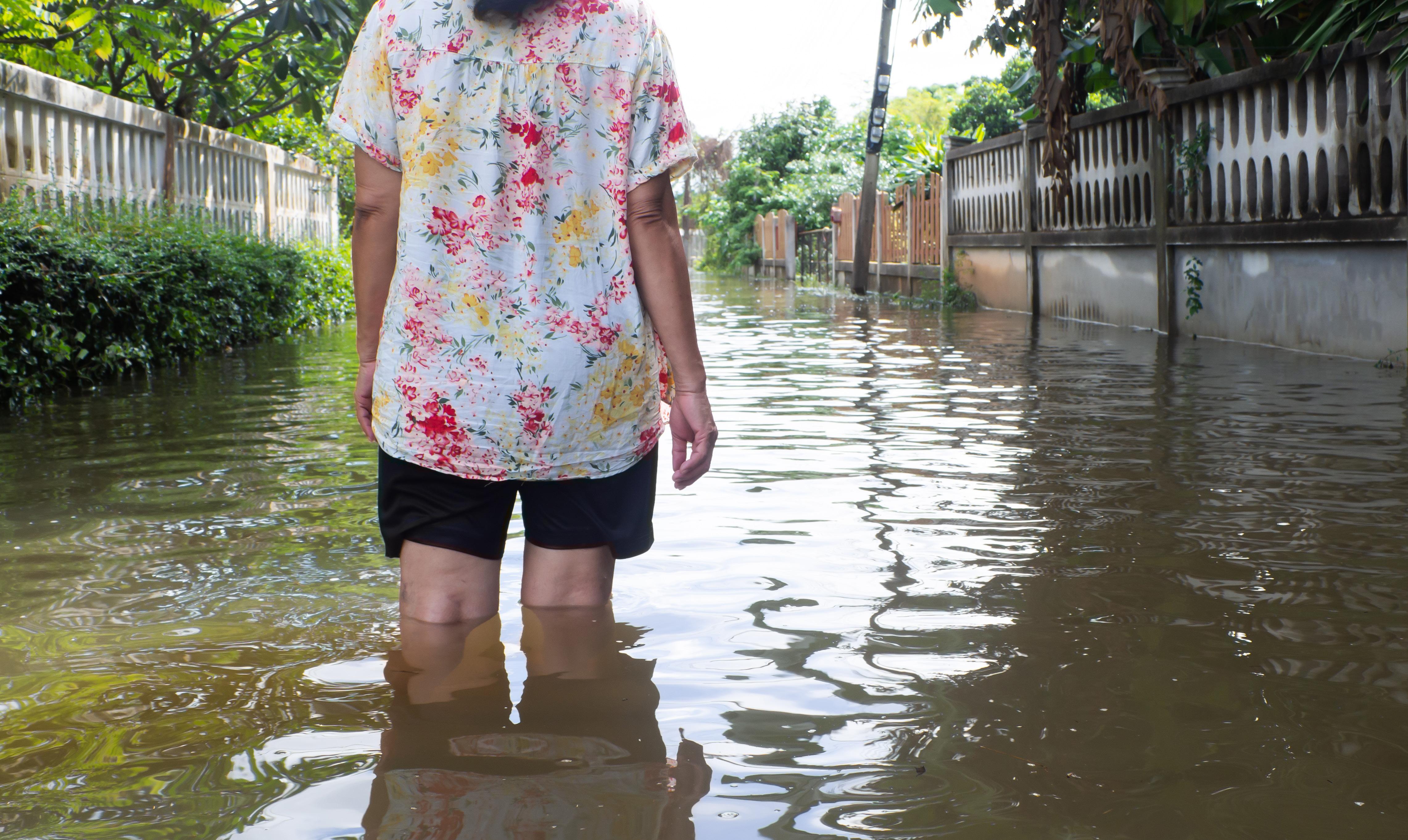 ĂversvĂ€mmad gata i Thailand. ĂversvĂ€mningar kan orsaka stora skador.