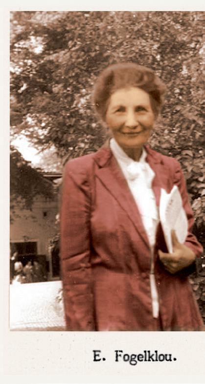 Emilia Fogelklou, och en förtroendevald vid en vitrappad stenkyrka.