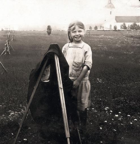Ur skrubbar och garderober kom skissblad, pannåer och dukar. Läsande och sjungande skolbarn, grå stugor i stilla ödslighet, tung skymning, lågmäld vårlängtan.