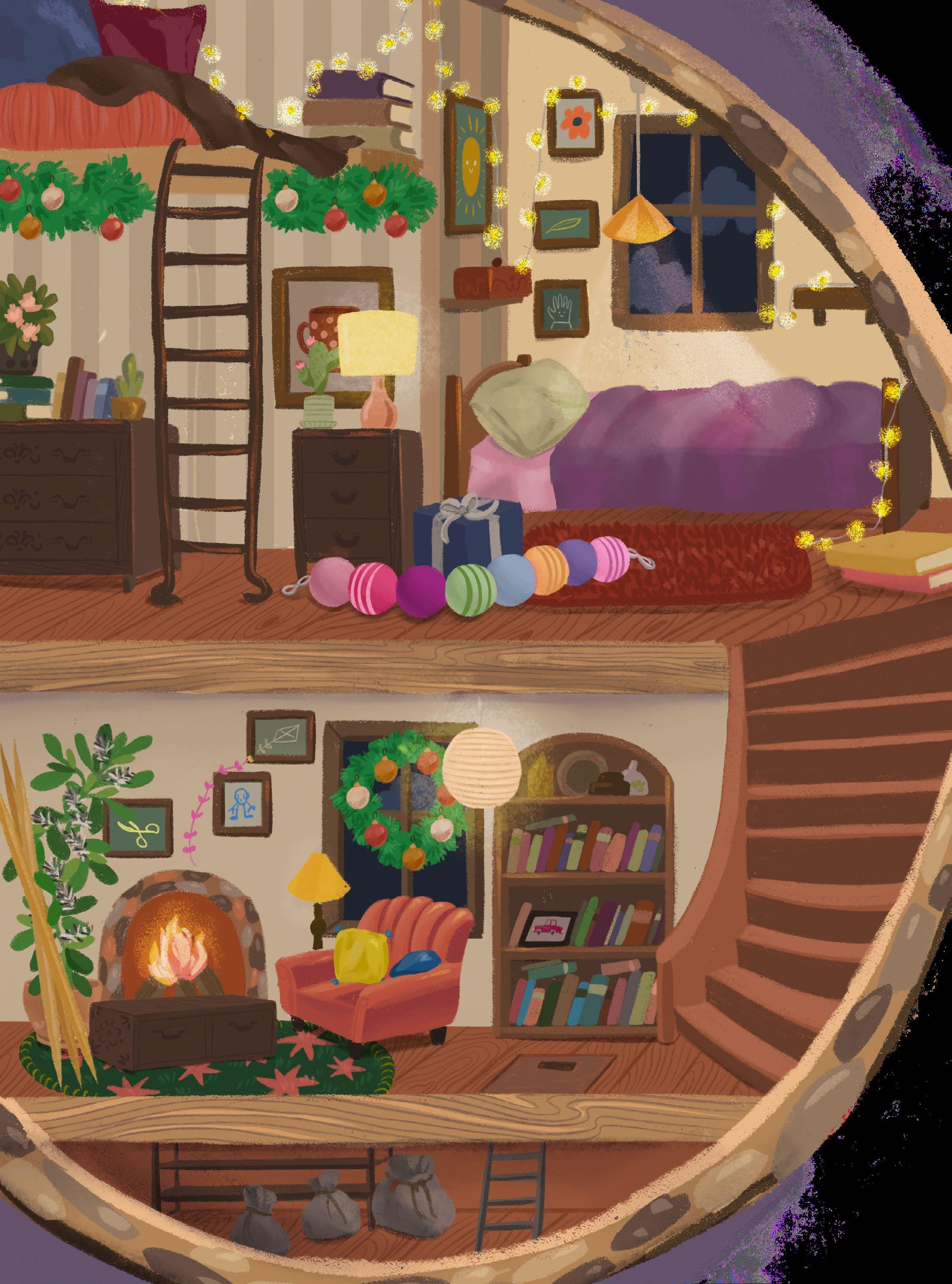 ”Där det förut bara var en vägg, fnns det nu en liten dörr. En nisse har fyttat in. Och det är här, bakom nissedörren, som det sagolika juläventyret tar sin början.”