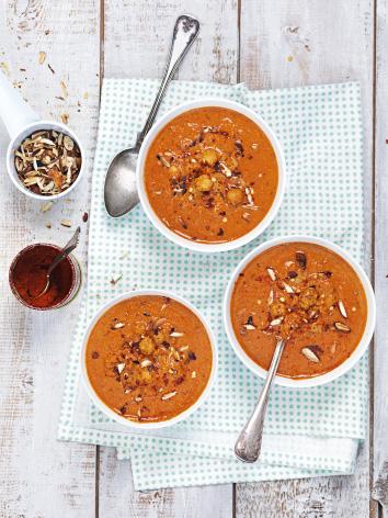 Mandy från Nya Zeeland mötte jag i ett kök där jag jobbade som 20-åring. Hennes kikärts- och tomatsoppa med mandel imponerade stort på mig och jag har lagat den sedan dess. Soppan är rejält mättande tack vare mandeln och kikärtorna. Gör helst buljongen från grunden, i en stor kastrull. Jag lovar att det betalar sig!