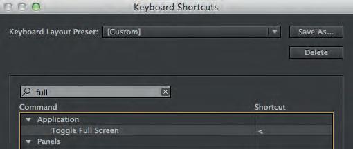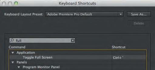 En del av de kortkommandon som finns i Pemiere Pro är gjorda för ett amerikanskt tangentbord och de fungerar tyvärr inte om datorn är inställd på svenskt tangentbord. Så är det med funktionen att spela upp i helskärmsläge. Men det går att lösa genom att du själv skapar ett kortkommando för helskärmsläge.
