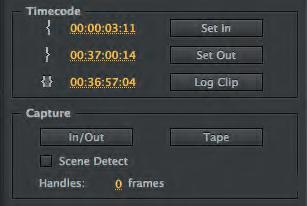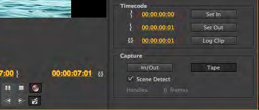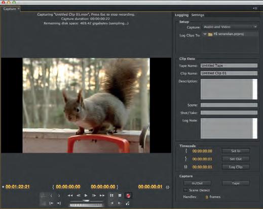 Du kan importera inspelat digitalt material direkt från en kamera eller bandspelare. Gå till File, Capture så öppnas fönstret Capture. Har datorn kontakt med kameran eller bandspelare kan du styra apparaten från fönstret precis som en bandspelare. Under flien Logging finns fla inställningar under olika rubriker: