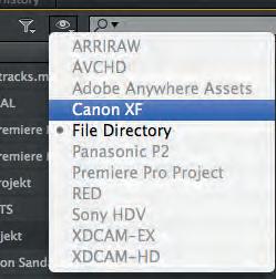3. Under symbolen av ett öga hittar du inställningsalternativ. Här är det material från en Canon XF-kamera som ska hämtas in i projektet.