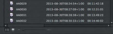Längst ner till vänster kan du välja om du vill se klippen som frimärksbilder, Icon View, eller som en lista, List View. Du kan även ändra visningsstorlek på klippen genom att dra i regeln intill.
